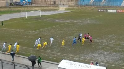 Terreno di gioco non in condizioni impeccabili in questo pomeriggio piovoso di febbraio per la gara tra Vigor Trani e Atletico Mola. La prima occasione della gara è firmata Trotta che impegna con un bel tiro Petruzzelli che chiude in angolo. I pochi tifosi (sotto la pioggia) della gradinata riempiono di fischi Tenzone che ci prova dalla distanza ma il tiro è debole e la palla finisce a lato.