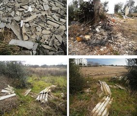 Tra i rifiuti c’è la presenza pericolosa di eternit, maggiormente allarmante perché frantumato. Il tutto vicino a campi di calcio ben frequentati da adulti e bambini.