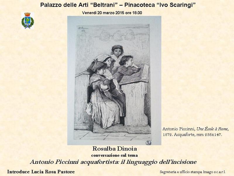 Venerdì 20 marzo 2015, alle ore 18.00, al Palazzo delle Arti “Beltrani” – Pinacoteca “Ivo Scaringi”, prende avvio un breve ciclo di incontri tenuti da Rosalba Dinoia, studiosa di risonanza nazionale, che si propone di accostare un pubblico di ogni età, a partire dai giovanissimi, a due figure di artisti pugliesi che nella seconda metà dell’Ottocento sono divenuti celebri in Italia e all’estero anche attraverso l’uso delle tecniche incisorie.