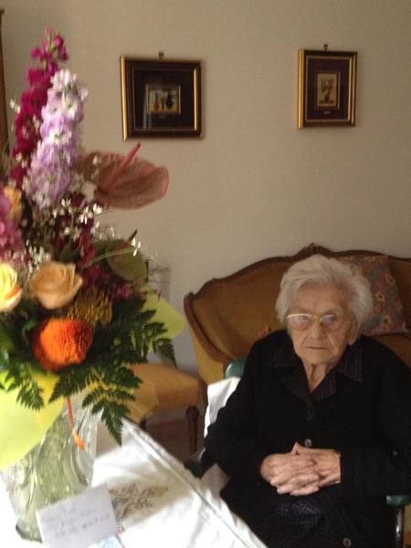 In ogni caso, avrà intorno a sé la famiglia, le persone a lei più care e, forse, potrà avvertire l'ammirazione di una Trani che dovrebbe trovare nella longevità e nello spirito di questa donna, probabilmente, un esempio virtuoso di come si affronti la vita: con una serenità tale da progredire negli anni non solo mantenendosi bene in salute, ma anche, favorendo una visione del mondo improntata ad un sano ottimismo.