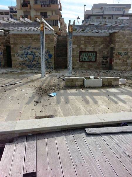 All'inizio dell'estate 2012, quando si insediò il sindaco Riserbato, furono rimosse strutture mobili ormai pericolose, ma anche quelle che all'epoca parvero ancora sane, come le pedane che conducono in mare, oggi sono foriere di nocumento per l'incolumità pubblica, rotte come sono in più punti e pericolose, quindi, per chi dovesse metterci piede.