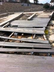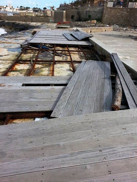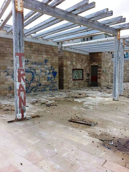 Ci sono anche i sostegni scoperti della pedana che avrebbe dovuto continuare a condurre i diversamente abili in mare, o, in ogni caso, facilitare la discesa in acqua dei cittadini: non c'è più nulla né di quello, né del progetto originale (costato un milione e mezzo), che pure prevedeva punti luce, locali da adibire alla ristorazione, depositi, guardiania e molto altro.