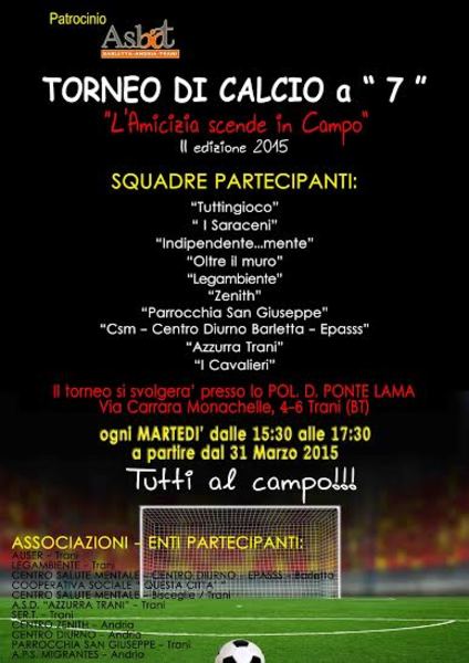 Lo sport come strumento di aggregazione, di crescita, svago ma soprattutto divertimento. Comincia oggi il secondo torneo di calcio "L'amicizia scende in campo" organizzato dal Dipartimento di Salute Mentale della Asl Bt.
