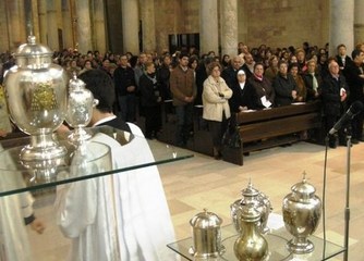 Parte il triduo pasquale e la Diocesi di Trani, stamani, come tradizione, si ferma per un momento posto a fondamento della liturgia. Durante la mattina del Giovedì Santo, infatti, non si celebra l’eucarestia nelle parrocchie, ma si officia un’unica messa, detta “del Crisma”, in cattedrale, alle 10. La presiede il vescovo, Mons. Giovan Battista Pichierri, insieme con tutti i presbiteri e diaconi dell’intera diocesi. Durante la santa messa, un appuntamento particolarmente significativo perché sottolinea la dimensione della chiesa come “comunità e popolo di Dio”, si consacrano gli oli santi e i presbiteri rinnovano le promesse effettuate al momento della loro ordinazione.