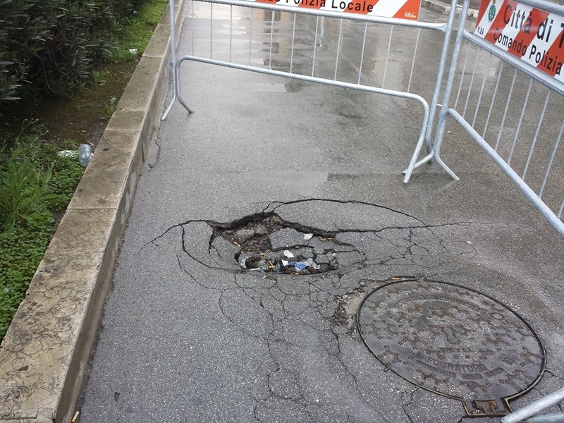 Il problema sembrerebbe legato all’alloggiamento del manufatto di proprietà di Acquedotto pugliese, cui, probabilmente l’Ufficio tecnico comunale potrebbe imputare i costi dell’intervento di ripristino e messa in sicurezza.