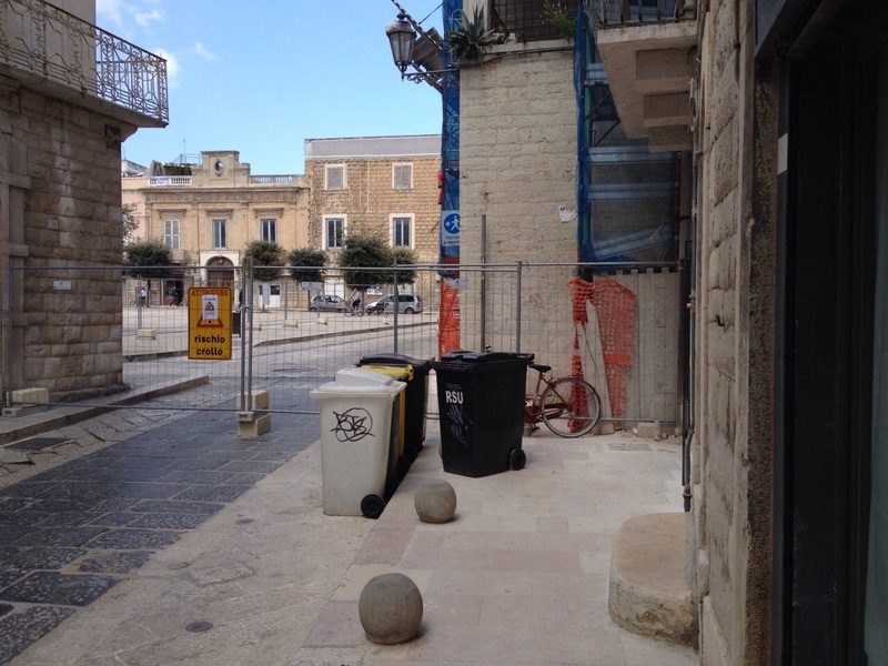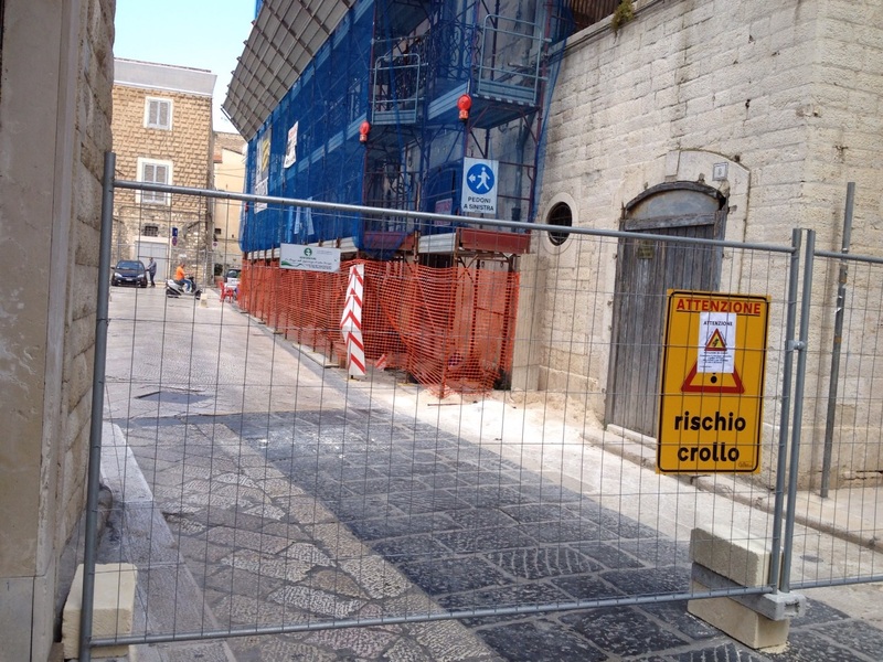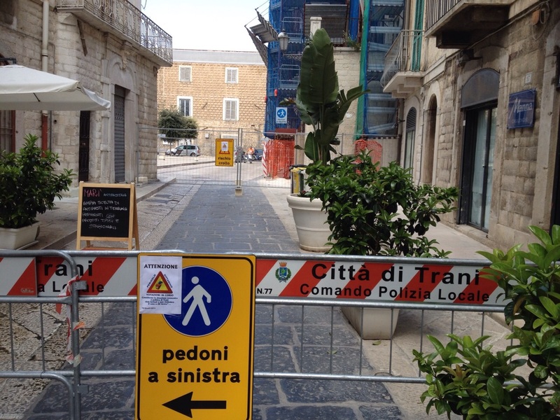 Obbligo di deviazione anche per i pedoni, costretti ad utilizzare una stradina, sulla loro sinistra, vico San Toma, che li conduce in piazza Tomaselli.