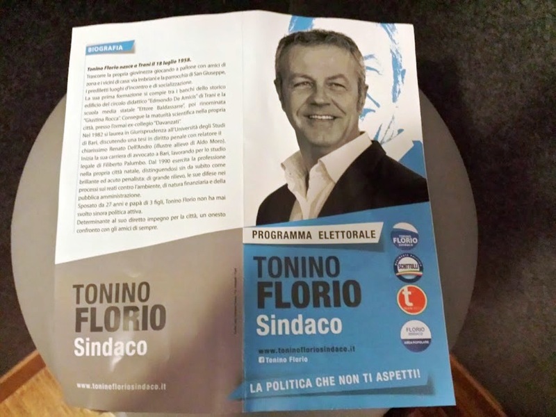 Così Tonino Florio, aprendo la presentazione delle sue quattro liste, nella piena conferma del quadro da noi anticipato: Tonino Florio sindaco; Movimento Schittulli; Trani libera; Area popolare. Florio ha fatto salire sul palco alcuni dei candidati al consiglio comunale, fra i quali gli assessori Salvatore Nardò e Nicola Lapi, nonché gli ex consiglieri comunali Beppe Corrado e Paolo Paradiso. Insieme con loro molti altri ex candidati ed altri neofiti totali della politica. «Con noi non troverete nessuno della passata amministrazione, se non quelli che hanno sbattuto la porta, e che per questo apprezzo ancora di più». Le liste sono in fase di ultimazione.