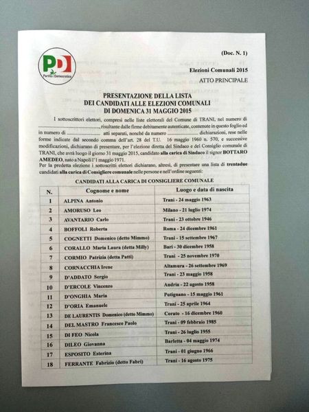 Si delinea sempre più il profilo della scheda elettorale per la coalizione di Amedeo Bottaro con la lista del Partito Democratico consegnata questa mattina. A breve pubblicheremo anche quella dei Verdi.