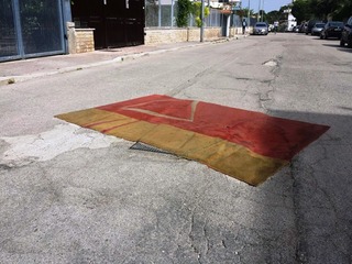 In una città in cui sono tanti ad affermare che «sulle strade di Trani andrebbe steso un velo pietoso», qualcuno ha preso letteralmente in parola l’adagio popolare e si è comportato di conseguenza: infatti, in via Matteotti, per coprire una delle tante, profonde buche presenti, è stato disteso un pesante tappeto colorato.