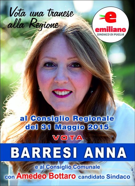 Oggi, sabato 9 maggio, alle 11.00, presso l’hotel San Paolo al convento, si terrà la presentazione ufficiale dei candidati al consiglio regionale della Puglia, a sostegno di Michele Emiliano presidente: Anna Maria Barresi (Lista Emiliano sindaco di Puglia); Giuseppe Paolillo (lista Popolari). Interverrà il coordinatore delle Liste Emiliano per la provincia Bat, Francesco Spina, nonché il candidato sindaco, Amedeo Bottaro.