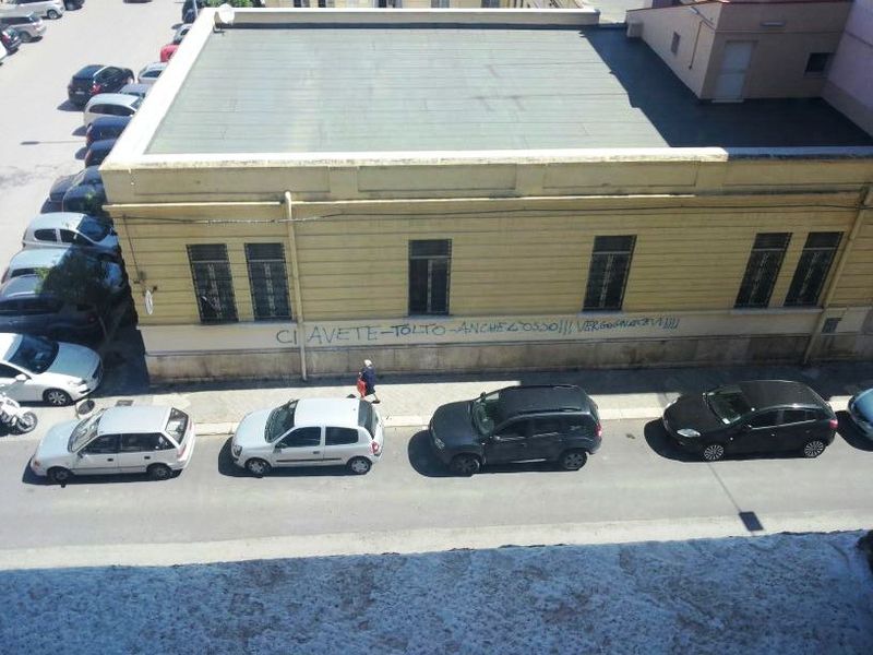 «Ci avete tolto anche l'osso, vergognatevi». Questa la frase che appare sul muro di cinta della palazzina, ex Croce bianca, situata in via Fusco, angolo via Tenente Morrico.
