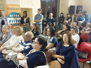 Fitto non ha mancato, anche, di commentare il passaggio di Francesco Spina, presidente della Barletta-Andria-Trani eletto con il centrodestra, nell'area di centrosinistra quale coordinatore delle liste Emiliano: «È una campagna elettorale troppo piena di compravendita di campagne acquisti e collocazioni di comodo: noi siamo coerenti e non è questo il modello di centrodestra cui ci ispiriamo».