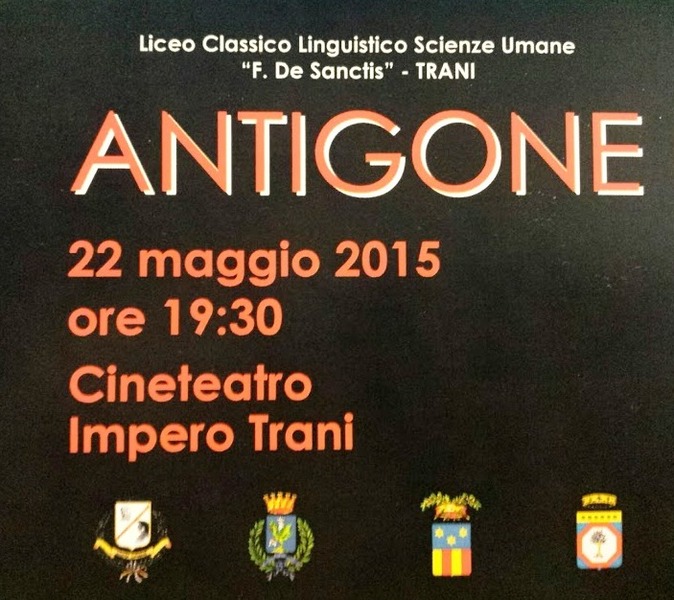 Si rinnova oggi, venerdì 22 maggio, il tradizionale appuntamento a teatro con gli studenti del Liceo classico, linguistico e delle scienze umane Francesco De Sanctis. Alle 19.30, sul palcoscenico dell'Impero, va in scena Antigone, di Sofocle, diretta da Michele D'Errico e coordinata dalla docente referente, Rossella Piccarreta.