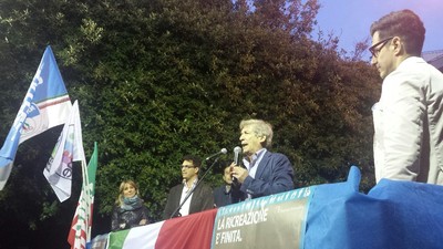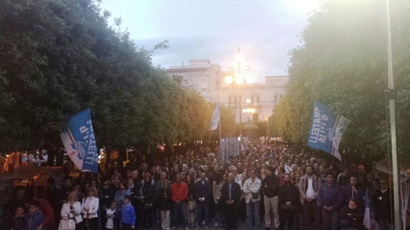 È tornato a tenere un pubblico comizio a distanza di ventuno anni dal precedente: molti capelli bianchi in più e tanta emozione, immediatamente superata, però, grazie al calore della piazza ed «alla determinazione con cui possiamo e dobbiamo invertire la tendenza e combattere la rassegnazione dei tranesi».
