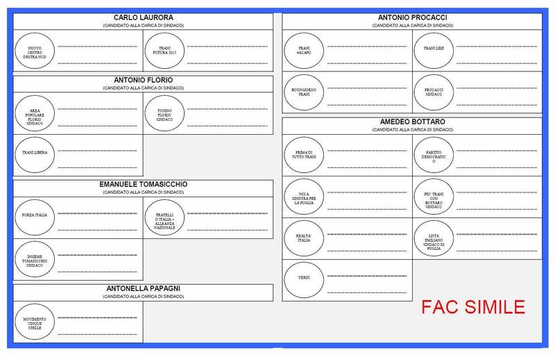 Sei candidati sindaco, venti liste e 559 candidati al consiglio comunale. Questo è il quadro delle elezioni amministrative che si terranno a Trani domani, domenica 31 maggio, abbinate con quelle regionali.