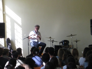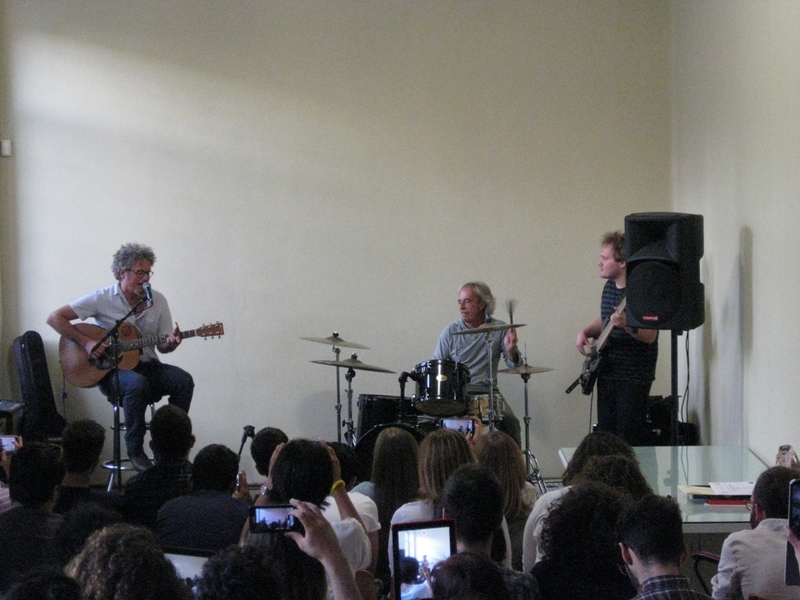 Alla fine della masterclass, un alunno della scuola, Luigi Conversano, ha avuto modo di suonare con Fabi e Marangolo la canzone “È non è”.