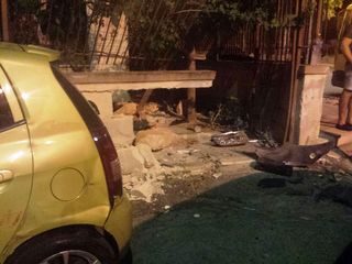 La monovolume è andata completamente distrutta, il muro e la recinzione in ferro sono letteralmente caduti a pezzi e gravi risultano i danni anche per l'utilitaria indirettamente coinvolta nel sinistro.