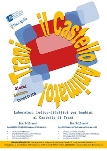 Anche questa estate Nuova Apulia Scarl, la società di servizi concessionaria del Ministero dei beni ed attività culturali e del turismo, propone l'iniziativa ludico-didattica per bambini, al Castello di Trani, dal titolo: "Trani, il castello animato. Giochi, letture, creatività".