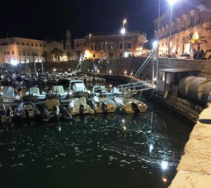 Gli scarichi schiumosi serali nel porto di Trani proverrebbero da sbocchi della fogna bianca. È quanto si apprende dall’Ufficio locale marittimo, nella persona del suo comandante, Stefano Sarpi, che fa sapere che «in quella zona del bacino portuale ci sono ben tre diversi sbocchi della rete fognante alluvionale, uno dei quali risalente agli anni ’30».