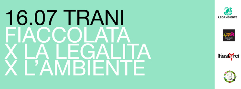 Il Comitato Bene Comune, il circolo Arci di Trani (Hastarci), Legambiente circolo di Trani, e Libera Puglia scendono in piazza uniti oggi, giovedì 16 luglio per dare vita ad una fiaccolata in difesa di ambiente, salute e legalità. A cui seguirà, al termine del percorso, un pubblico dibattito, in cui interverranno voci autorevoli come quelle di Francesco Tarantini presidente di Legambiente Puglia, Alessandro Cobianchi presidente di Libera Puglia, Raffaele Lopez presidente Sigea (Società italiana di geologia ambientale) sezione Puglia, il medico oncologo Dino Leonetti presidente dell’associazione Onda d’urto – uniti contro il cancro onlus di Andria, e Davide Giove presidente Arci Puglia.