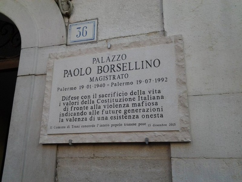 L’iniziativa rappresenta l’ideale prosecuzione di un altro evento, ormai storico, dedicato alla lotta alla mafia. Il riferimento è all’intitolazione a Paolo Borsellino della palazzina di piazza Mazzini, confiscata alla criminalità organizzata ed oggi sede degli organismi di polizia giudiziaria della Procura di Trani. La mattina del 13 dicembre, in una piazza gremita da bambini e ragazzi delle scuole, il procuratore, Carlo Maria Capristo, con a fianco Concetta Montinaro, distesa e sorridente, nonostante sia la vedova del capo scorta di Giovanni Falcone, rivolse un pensiero «agli agenti di scorta ed alle vittime dimenticate della criminalità terroristica e mafiosa, dimenticate dalle stesse istituzioni – tuonò Capristo nel suo duro intervento -, che ancora oggi pagano gli agenti di scorta quattro soldi, ma non da questi ragazzi che oggi gremiscono la piazza. Siete voi la lotta alla mafia, siete voi il volto buono dell’Italia. Dentro il palazzo che è di fronte a noi ieri c’era il boss ed oggi c’è lo Stato».
