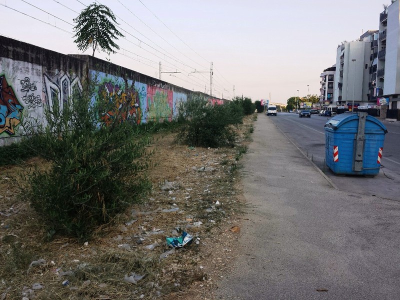 La maggiore concentrazione d’immondizia è in corrispondenza di fiorenti attività commerciali, soprattutto di pubblica somministrazione di alimenti e beni al consumo, in particolare nei pressi dell'incrocio con via Trombetta. Poco più avanti, un cassonetto dei rifiuti ci ricorda che basterebbe fare poca strada per conferire quanto, invece, abbandonato fra la terra, all’ombra degli ulivi.