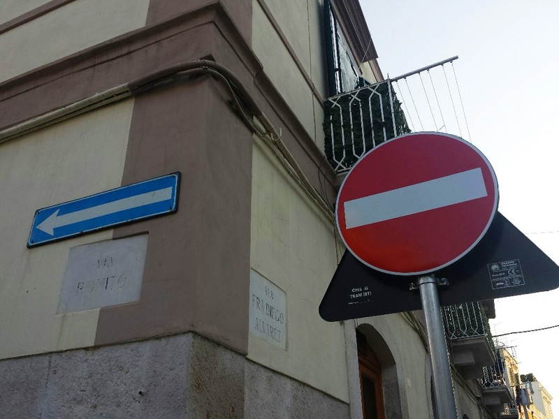 In via San Giovanni Russo, direzione via Maiorano, all'intersezione con via Alvarez, vi è la direzione obbligatoria a sinistra. Sempre in via San Giovanni Russo, direzione verso via Beltrani, all'intersezione con via Alvarez, la direzione obbligatoria adesso è a destra.