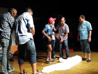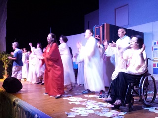 E così La maison de fous, scritta e diretta da Marco Colonna, è diventata l’esemplare frutto del lavoro del laboratorio di teatro comico, cominciato ad ottobre 2014 e che ha coinvolto gli ospiti della Casa per la vita e del Centro diurno socio educativo e riabilitativo. Uno spettacolo con ottime scelte musicali, recitazione a tratti di alto livello, capacità di interagire fra gli attori, splendida predisposizione alla comunicatività con gli spettatori.