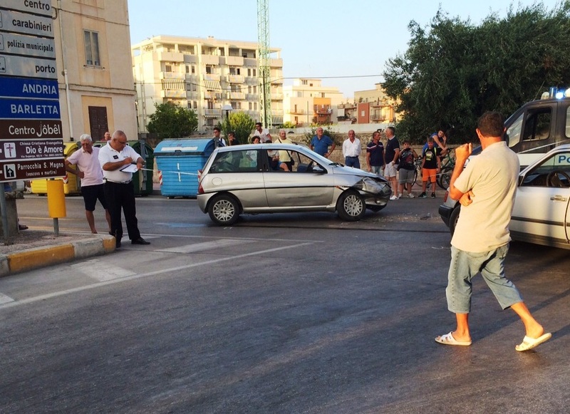 Incidente ieri sera, poco dopo le 19, all'intersezione fra via Superga e via Sant'Annibale Maria di Francia, dove sono venute in collisione una Lancia Y, che percorreva via Di Francia, diretta verso Corato, ed una Mercedes, che, da via Superga, svoltava a sinistra verso il passaggio a livello.