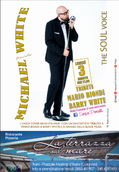 Questa sera, lunedì 3 agosto, "La terrazza sul mare" organizza una serata musicale a partire dalle ore 21.30 con la tribute band di Mario Biondi e Barry white (in collaborazione con Sergio Porcelli).