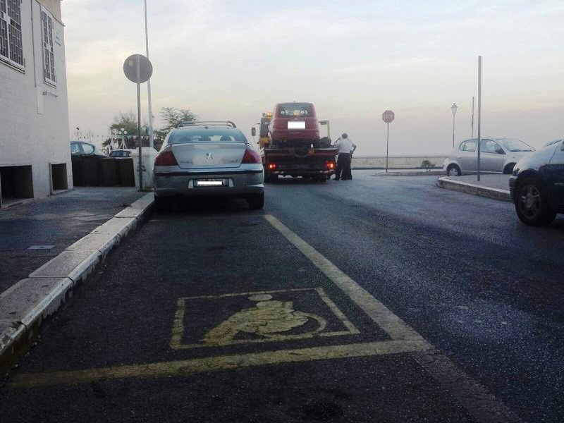 È ripresa l'offensiva della Polizia locale contro l'occupazione illegittima di stalli per portatori di handicap. Nel pomeriggio, in via Nicola de Roggiero un'auto parcheggiata all'interno di uno degli spazi assegnati ai diversamente abili, è stata rimorchiata dal carroattrezzi, alla presenza di agenti del Comando.