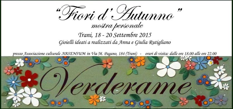 Grazie al decennale studio di tecniche e materiali, lo Studio Verderame può proporre un prodotto di alta maniffattura artigiana: si tratta di gioielli in rame o argento e pietre semi-preziose che uniscono la tradizione artigiana coratina (grazie alla collaborazione con Maestri artigiani del territorio), coniugata alla creatività e alla passione per l'arte di artiste eclettiche come Anna e Giulia Rutigliano.