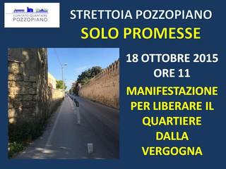 Oggi, domenica 18 ottobre, alle 11, ci sarà una protesta davanti alla strettoia di Pozzo Piano per «manifestare pacificamente e chiedere al sindaco di liberare il quartiere dalla vergogna».