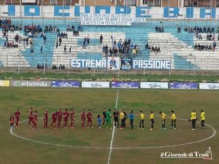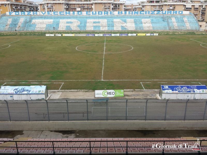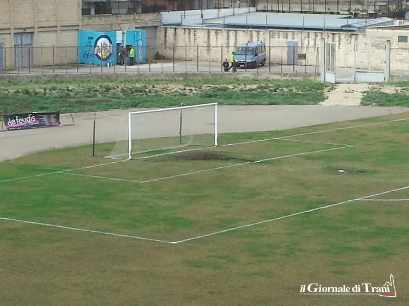 Il terreno spelacchiato, come mai s'era visto prima, è la prima notizia, non lieta, del pomeriggio di Trani-Mesagne. Tuttavia, il soffermarsi di gruppi di colombi su quel poco di erba che resta darebbe l'impressione che la semina sia iniziata. Intanto, ieri la squadra neanche si è allenata sul terreno di gioco: se l'avesse fatto, con la pioggia in corso, sarebbe stato un autentico disastro.