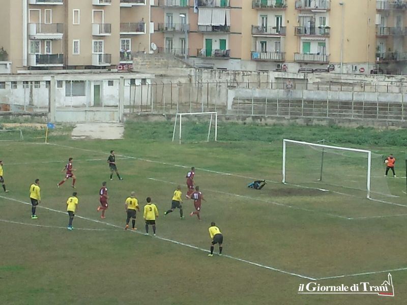 Dopo venticinque minuti avari di emozioni, gran Trani dal rigore in poi, forse il migliore della stagione, considerando assenze e condizioni del terreno di gioco.