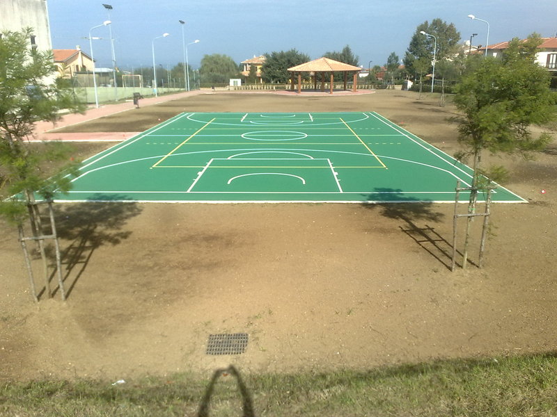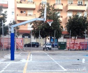 Le strutture sono già pressoché complete e, nel frattempo, l'impresa esecutrice, di Leonardo Napoletano, sta anche badando all’erezione della recinzione del campo di gioco. Resta il problema del fondo, che in questo momento è semplicemente costituito di pericoloso asfalto, tutt'altro che sicuro per l’attività sportiva in caso di cadute.