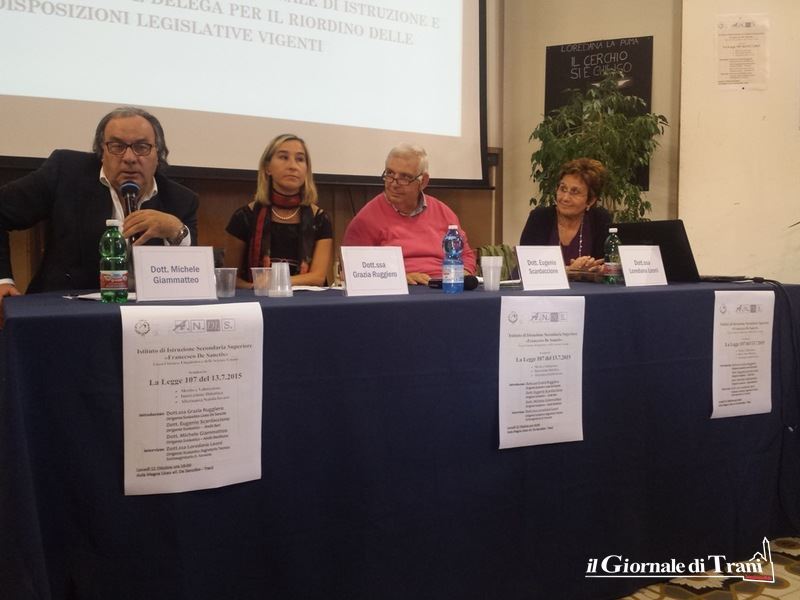 Ha introdotto l’incontro Grazia Ruggiero, dirigente scolastico del liceo De Sanctis. Sono intervenuti anche Eugenio Scardaccione, dirigente scolastico e membro dell'Andis (Associazione nazionale dirigenti scolastici) di Puglia, e Michele Giammatteo, dirigente scolastico e membro dell'Andis Basilicata.