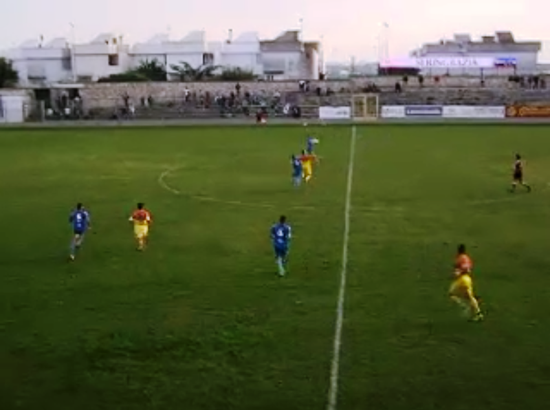Nulla da fare per il Trani nella trasferta sul campo della Sudest Locorotondo. Il 3-0 finale si materializza già nei primi 18 minuti di gioco, con il primo dei tre gol subito su calcio di rigore dopo appena un minuti e mezzo: falo di Allegretti su Lanave, dal dischetto trasforma Visconti.