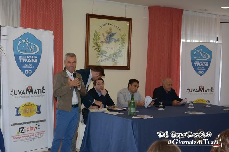 Entusiasta Antonello Quarto, coordinatore regionale Puglia della Fgic: «Trani è una città di riferimento per il calcio femminile. Per il quarto anno consecutivo avete tenuto in vita anche il centro di formazione. Primeggiare in questo sport per voi donne è difficile, a causa della mentalità chiusa e delle strutture carenti, ma la Puglia è stata tra le prime in Italia ad aver dato slancio a questa disciplina».