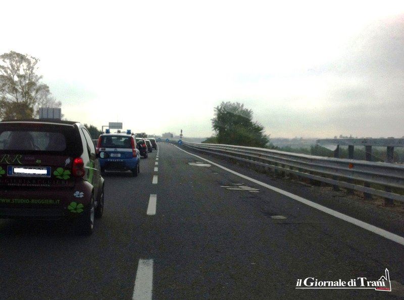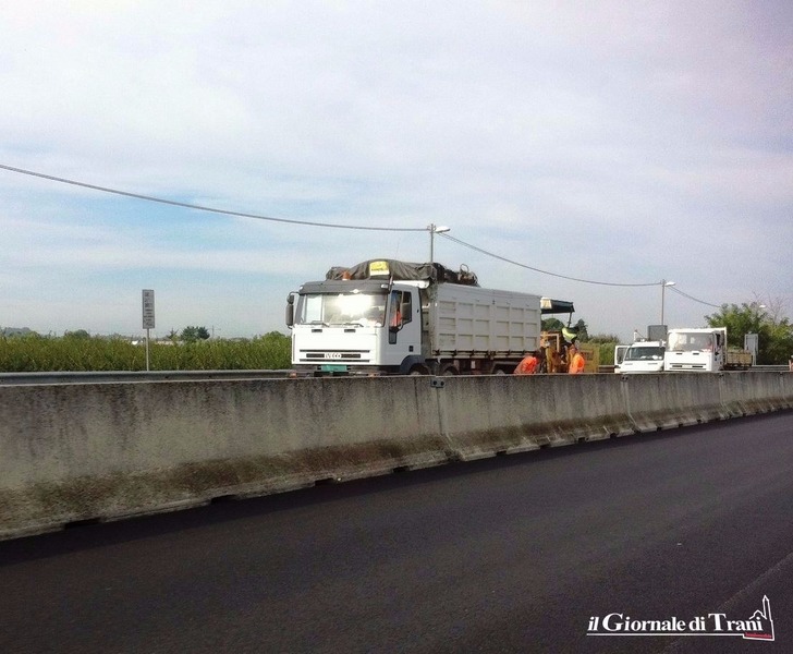 Sono finalmente in corso i lavori di posa in opera della nuovo manto bituminoso sulla strada statale 16 bis, nei pressi di Trani. Rallentamenti, infatti, si verificano in direzione Bari, soprattutto all'altezza dell'uscita per Capirro, dove si sta nuovamente asfaltando la corsia di marcia: si procede, dunque, sulla sola corsia di sorpasso.
