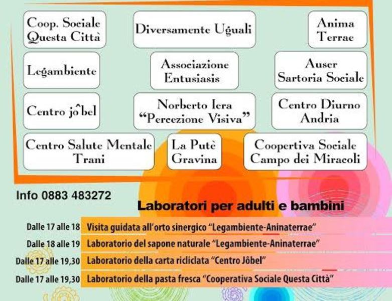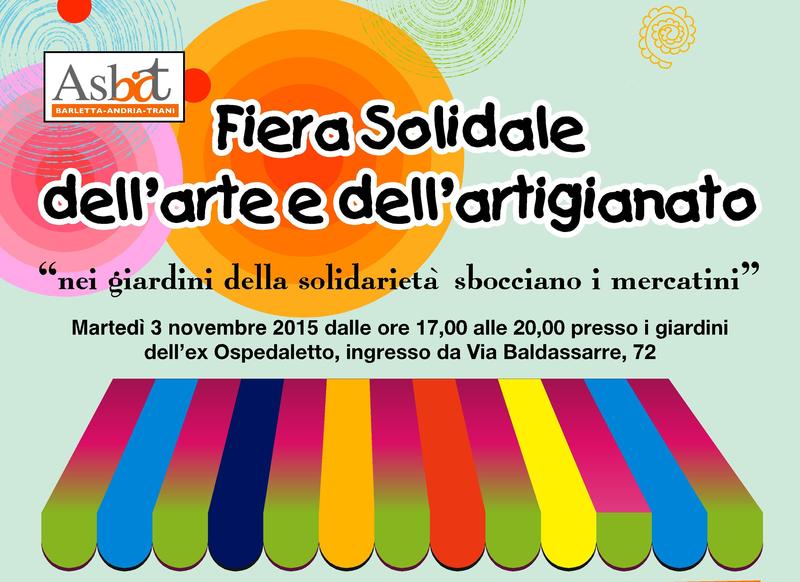 Oggi, martedì 3 novembre, dalle 17 alle 20, i giardini dell'ex ospedaletto di Trani saranno allestiti per una fiera solidale dell'arte e dell'artigianato organizzata dal Centro di Salute Mentale della Asl Bt in collaborazione con diverse associazioni e cooperative sociali.