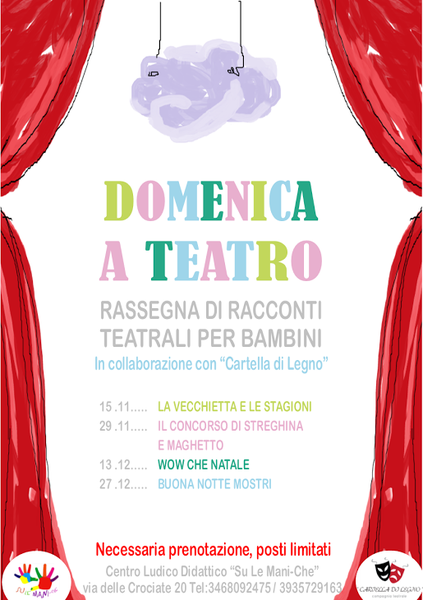L’associazione “Su Le Mani-Che” di Trani, in collaborazione con la compagnia teatrale di Barletta "Cartella di Legno", organizza una rassegna di racconti teatrali domenicali, dal titolo "Domenica a Teatro, bambini!"
