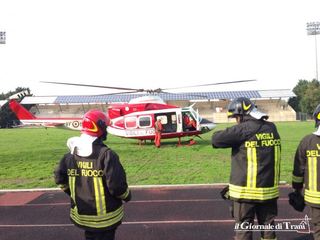 Per portarlo via si è reso necessario l'intervento di un elicottero dei vigili del fuoco di Bari, che è riuscito ad atterrare su uno sterrato non distante dal luogo dell'impatto: medico ed infermiere hanno accompagnato il paziente fino al terreno di gioco dello stadio Sant'Angelo dei Ricchi, di Andria, dove l'elicottero è atterrato per poi favorire il successivo trasporto in ambulanza all'ospedale Lorenzo Bonomo.