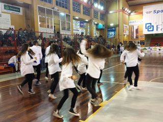 È il preludio ad un ultimo quarto quasi senza storia, in cui Trani riprende a difendere forte, fa esordire i giovanissimi Melillo e Leone (in posa pre partita con il diggì Ninni Ferri) e vede Di Loreto segnare, contemporaneamente, il 30mo punto personale e 100mo di squadra.