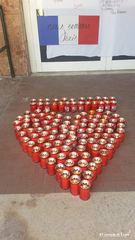 Erano 129 i ceri che ieri, alla scuola media statale Giovanni Bovio, i docenti hanno voluto accendere, insieme ai ragazzi, per ricordare le vittime dei fatti di Parigi, dopo aver osservato un minuto di silenzio e aver fatto trasmettere l’inno nazionale francese, “La Marsigliese”.