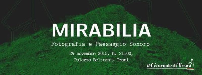 Si conclouderà oggi, sabato 5 dicembre, presso palazzo Beltrani, "Mirabilia", mostra fotografica e live performance. L’esposizione cerca di interpretare ed evocare, con i suoni e le immagini, bellezze e contraddizioni del paesaggio in relazione con abitanti, storia e presente.