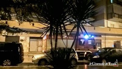 Vigili del Fuoco all'opera ieri sera, in via Enrico De Nicola, per mettere in sicurezza una porzione di facciata di uno stabile dal quale si sono distaccati calcinacci, cadendo in parte sulla veranda al primo piano dello stesso stabile, in parte sulla strada.