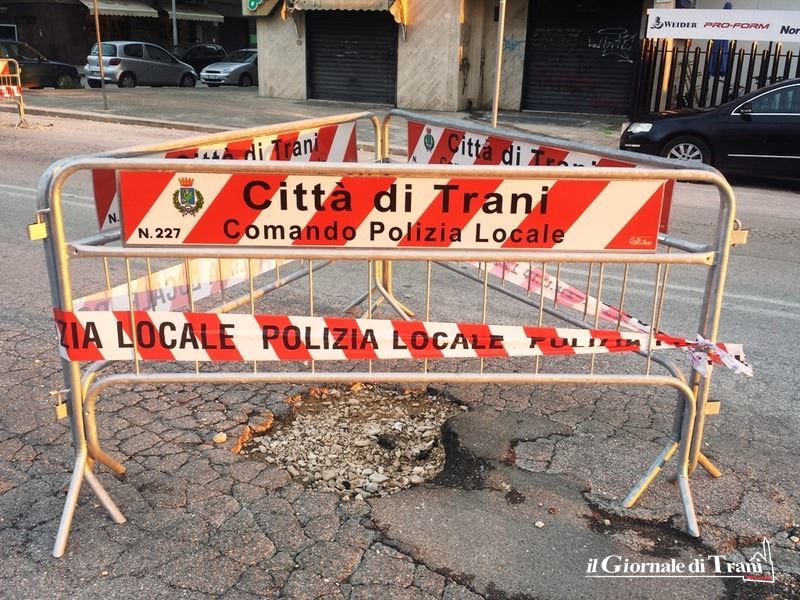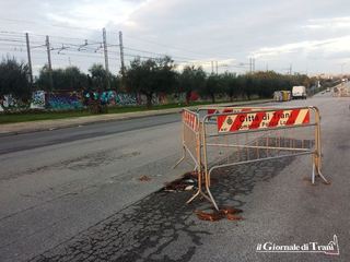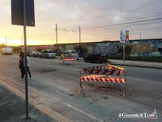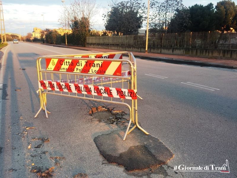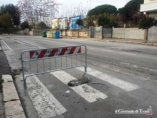 Un altro gruppo di transenne circonda una buca, particolarmente profonda, formatasi all'incrocio con via Trombetta, ed anche in questo caso serve prestare particolare attenzione. Quasi non fa più notizia, pertanto, il transennamento di una buca in via Borsellino, che risale ormai ad alcuni mesi fa.