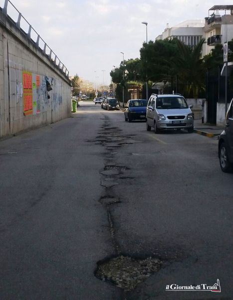 Fra le strade totalmente impraticabili, oggetto di imminente intervento da parte della pubblica amministrazione, si spera ci sia via Germania, da tempo al centro di denunce e segnalazioni da parte dei cittadini. Si tratta di una delle vie più importanti della periferia nord di Trani sulle quali, purtroppo, la manutenzione è sempre venuta a mancare.