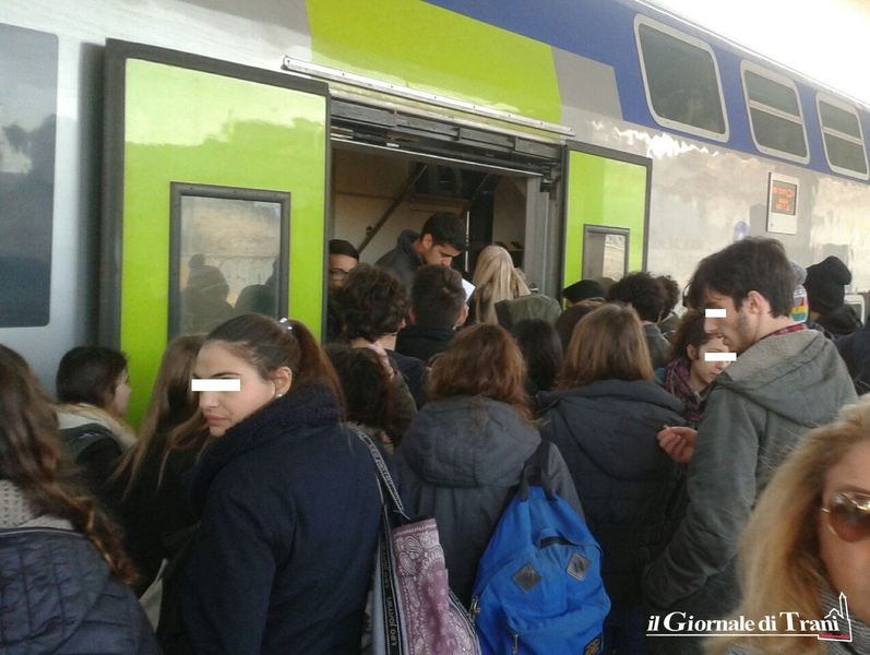 Sotto accusa, in particolare il treno regionale che parte da Foggia ed arriva a Trani alle 7:38 che, secondo quanto riferiscono alcuni utenti, giunge sistematicamente con ritardi dai 20 ai 30 minuti determinando, nel frattempo, la sovrapposizione con i passeggeri del successivo treno regionale in partenza da Trani alle 8:00: così, tutti salgono sul treno che arriva in ritardo, determinandone l'iper affollamento e lasciando pressoché vuoto quello che segue.